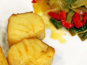 El bacalao frito es un plato típico de las sidrerías, que sorprende la primera vez que lo comes, por su sabor y jugosidad. Si además lo acompañamos con una piperrada el resultado es francamente sabroso y más completo. ![]() Ingredientes: Un lomo de bacalao de unos 300-350 gr. Elaboración: Las cantidades dadas de verduras son ya limpias y cortadas en tiras. Ponemos todas las verduras a pochar con dos cucharadas de aceite, para lo cual necesitarán al menos media hora, estando tapadas la mayor parte del tiempo (solo destapar al final si han soltado mucha agua) y añadiendo sal al punto cuando falten 5 minutos. El bacalao deberemos haberlo desalado bien. Esto quiere decir que si es una tajada gruesa necesitará 48 horas mínimo, cambiando el agua cada 12 horas, en un sitio fresco. Lo sacamos del agua, secamos un poco y cortamos en dados bien gordos (digamos que en unos 8 trozos) y pasamos por harina, sacudiendo el sobrante. Ponemos un cacito con el aceite a calentar. Cuando humee bien echamos unos trozos de bacalao y dejamos freir hasta que se dore y suene un poco chisporreteo. Sacamos a una fuente con papel absorbente y seguimos friendo cuando se haya vuelto a calentar bien el aceite. Comeremos el bacalao acompañado de la piperrada bien caliente. ![]()