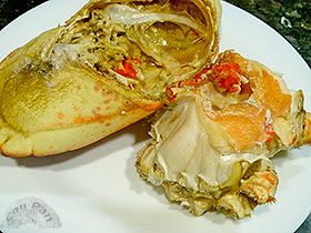 El buey de mar es un marisco muy socorrido y barato. Que la verdad es que queda francamente rico, sobre todo si pillamos de una buena zona y en buena temporada. Si además conseguimos una hembra con al menos unas cuantas huevas, podemos añadir la elaboración de una ensaladilla con sus tripas y algún aderezo, que nos dejará un plato muy completo como para dos... ![]() Ingredientes: 1 Buey de mar (hembra) de 1-1,2 Kg Elaboración: Cocemos el buey según lo dado en su apartado (para este peso serán unos 15-18 minutos en agua con 60 gr. de sal por litro). El huevo lo echamos a cocer al mismo tiempo. Luego lo dejamos enfriar un tiempo. ![]() Una vez frío lo abrimos: para ello hay que quitar la zona de debajo del vientre, y la de la boca. Luego se aplasta con el mango de una cuchara (para romperlo) lo que queda de la boca, y así ya se puede sacar el cuerpo entero. Quitamos todas las patas y las reservamos para luego. Del cuerpo retiramos las branquias con un cuchillito. Tanto del interior del cuerpo (o cabeza) como de entre medias de la carne sacamos todas las huevas que podamos y la zona cremosa de color marrón claro, así como todo lo que sea cremoso que quede en el cuerpo. ![]() Una vez la carne bien limpia de huevas, la cortamos en 2 a lo largo y luego cada parte en 2 de nuevo, para que sea más cómodo de comer. Lo metemos a la nevera un rato junto con las patas que teníamos separadas (pero conservando separadas las de una mitad y otra, para que cada uno coma su mitad). Ahora haremos una ensaladilla con todo lo que hemos sacado del cuerpo, más la cebolleta, pepinillo, huevo cocido y surimi (u otras cosas que puedas querer según tus gustos). ![]() Picamos muy fina la cebolleta, el pepinillo y el huevo. Troceamos las barritas de surimi (para los puristas: en su lugar podríamos echar el contenido de las pinzas del bicho). Y le añadimos todas las huevas y resto de cosas recuperadas del cuerpo, bien picadas. Salamos, aliñamos con el aceite y vinagre, revolvemos bien, y lo metemos también a la nevera hasta la hora de comer. ![]() ![]() Comeremos por un lado la carne limpia del buey, ayudándonos de unas tenacillas o cascanueces, y por otro lado la ensaladilla preparada con los interiores. Un plato muy completo para una comida "barata" pero "de lujo" :) |