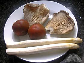 Una ensalada diferente, al llevar espárragos frescos crudos. Queda muy refrescante al aunar el crujiente y un poco acidillo de los mismos con la ternura del tomate que será de una forma poco vista: en puré grosero. El complemento de las setas remata un conjunto muy original, y otra manera de comer espárragos, que ahora ya tenemos todo el año. ![]()