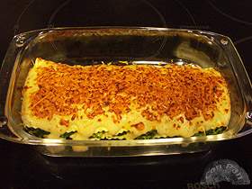 Metemos a gratinar al horno hasta que esté dorado. Ponemos el horno en función grill+turbo a 220º para que además se caliente bien por dentro.