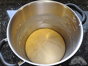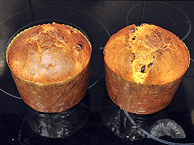 El Panettone podríamos decir que es la versión italiana del Brioche, aunque se asocia más como dulce navideño. Se diferencia principalmente del brioche en que es más dulce y va relleno con trocitos de frutas confitadas o chocolate. Nosotros vamos a hacer 2 panettones de medio kilo, y por la forma particular que usamos para añadir el relleno vamos a poder hacer las diferentes variantes en una hornada. ![]() Ingredientes: 400 gr. de harina de fuerza Elaboración: Aunque se le supone la experiencia con pan casero o brioche, esta receta no es demasiado complicada: no vamos a decir que sea fácil, pues todos los bollos de pastelería llevan su trabajo, pero hemos intentado reducir los pasos. Eso sí: el amasado es muy laborioso y largo y se impone el uso de una máquina de amasar... o si no duplicar los tiempos dados para amasar a mano. El día anterior por la noche prepararemos un prefermento (biga). Para ello mezclamos en un bol: 125 gr. de harina de fuerza Hacemos una bola con todo bien mezclado y dejamos toda la noche en el bol (o sea, unas 9-10 horas) a temperatura ambiente y tapado con un film transparente. ![]() ![]() Al día siguiente por la mañana es cuando tendremos realmente el trabajo. Comenzaremos preparando un almibar con 120 gr. de azúcar y 30 gr. de agua. Le añadimos media cáscara de naranja o limón, y opcionalmente el trocito de vainilla que la habremos abierto y extraído las semillas. Dejamos hacer a fuego suave durante 5 minutos, quitamos la cáscara y la vainilla y retiramos del fuego para que se enfríe un rato. Cascamos los huevos en un bol y añadimos leche hasta completar 160 gr., luego incorporamos el almibar ya tibio y batimos hasta que esponje. ![]() En el bol de la amasadora ponemos la masa que tenemos fermentada, 12 gr. de levadura disuelta en un poco de agua (como 15 gr.), añadimos el resto de la harina (275 gr.) con un pellizco de sal, y los huevos con el azúcar. Mezclamos bien y luego subimos la velocidad y amasamos durante 10 minutos. Si se necesita podemos ir añadiendo hasta 25 gr. más de harina, pero mejor evitarlo salvo que quede muy líquido, pues la consistencia la tiene que coger al amasar. Una vez medio amasado iremos incorporando poco a poco la mantequilla troceada (a temperatura ambiente o ligeramente pasada por el microondas, pero no derretida), y dejamos que continue amasando otros 10 a 15 minutos, hasta que tengamos una mezcla ligera y brillante y que no se pegue. ![]() ![]() Dejaremos fermentar unas 2-3 horas o hasta que doble el volumen. Antes de sacar la masa del bol, troceamos las frutas escarchadas y las juntamos con las pasas sueltas y sin rabito. Por otro lado preparamos las pepitas de chocolate o troceamos a modo uno que nos guste. Si vas a hacer 2 iguales pues se pone el doble de lo que te interese y ya está... Sacamos la masa del bol y pesamos 2 partes iguales, que extendemos sobre la encimera en forma de cuadrado. Incorporamos en cada parte sus correspondientes frutas o chocolate, enrollamos y terminamos dando un amasado leve para mezclarlo bien todo. ![]() ![]() Una vez bien repartido el relleno, hacemos una bola con cada parte y las pasamos a dos moldes (especiales para panettone) de medio kilo. Dejamos de nuevo a temperatura ambiente (21-23 ºC) hasta que tripliquen el volumen. Según la temperatura y la acción de la levadura puede tardar de 4-6 horas, así que no tengas prisas. ![]() Cuando la masa haya subido casi al triple, o sea hasta que la parte superior esté casi al nivel del borde del molde, es que está listo para hornear. Hacemos unos cortes en cruz en el centro de cada panettone, separamos un poco hacia afuera las puntas de "piel" que quedan, y ponemos un poco de mantequilla (como una cucharadita) en el centro. ![]() Ponemos en el horno (precalentado a 180 ºC, calor superior e inferior) y tenemos los panettones 20 minutos, después bajamos la temperatura 160 ºC y dejamos otros 20 minutos. Comprobamos con una aguja que esté bien hecho, si se ve que sale húmeda mantenemos un rato más. ![]() Dejamos que se enfríen en el horno con la puerta un poco abierta para que no se baje, nunca sacarlos de repente. Después hay que esperar para cortarlos unas horas, sobre todo el de chocolate, pues al poco de hacerse las pepitas estarán blandas y se mancha al cortar. Disfruta de tu panettone casero y asombra a tu familia estas fiestas ;) ![]() |