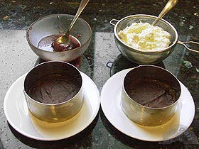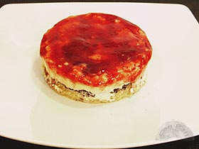 Este postre lo hicimos porque teníamos un poco de requesón, e intentamos prepararlo de una forma original. Empezamos a pensar y ver que habia en casa y como tambien teniamos brioche decidimos combinarlo con el requesón. Dándole un par de vueltas nos quedó un postre diferente y muy rico, que además acepta bastantes variaciones, por lo que la compartimos a ver si os gusta. ![]() Ingredientes: 50 gr. de chocolate para fundir Elaboración: Lo primero será poner a deshacer el chocolate en el microondas, hasta que esté totalmente líquido. Dejamos enfriar un poco para que esté manejable pero que no escurra mucho. Usaremos dos moldes redondo metálicos de 10 cm, con los que de momento cortamos un redondel de las lonchas de brioche, retirando lo que nos sobra. Los redondeles que nos han quedado los ponemos sobre la superficie donde vamos a trabajar, y las untamos por uno de los lados solo de chocolate. Debemos cubrier bien toda la superficie, y luego dejar enfriar del todo el chocolate hasta que endurezca (podemos meterlos en la nevera para ahorrar tiempo). ![]() Cuando el chocolate está bien duro le quitamos los picos que hayan podido salir por los bordes, y colocamos de nuevo el redondel que hemos utilizado para cortar el brioche, que dejamos puesto para que nos sea mas fácil poner el requesón y no se nos caiga por los lados. ![]() Ponemos la mitad del requesón en cada tartita, procurando compactarlo bien y que quede liso, para cubrir finalmente con una capita de mermelada. La mermelada puede ser del sabor que a cada cual le gusta: nosotros esta vez la hicimos con mermelada de frutas del bosque pero otra vez la hemos hecho con mermelada de mandarina y siempre bien. Ponemos las tartitas en la nevera hasta la hora de servir. En el momento de sacarlo a la mesa lo desmoldamos con cuidado de los aros a los platos, empujando por debajo, y listo para comer. Al estar frío es un postre de lo mas ligero después de una buena comida, y queda muy agradable con la sorpresa de la capa dura de chocolate en medio, que por otra parte impide que el brioche se humedezca. ![]() |