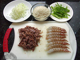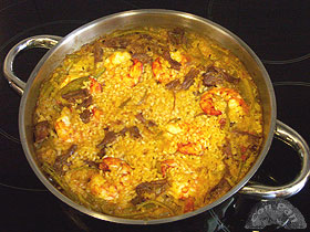 Un plato original nuestro, salido de una improvisación. Que hemos elaborado un poco más en ésta segunda versión que es la que publicamos, siendo el resultado sabroso y original. El confit de pato (en este caso los muslos) es un elemento poco presente en la cocina española. Pero a nosotros nos gusta mucho, solemos comprarlos en Francia donde tiene mucha tradición, y lo comemos de muy variadas formas. En este caso se nos ocurrió hacer una especie de paella con él. ![]() Ingredientes: 180 gr. de arroz Elaboración: Prepararemos todo previamente, cortando en juliana el pimiento y picando la cebolla. También desmigamos el confit y pelamos las colas de langostino. ![]() Sofreír en una paella (tartera si es para 2 como es nuestro caso) con aceite, la cebolla y el pimiento. A medio hacer añadir el tomate y dejar un rato pochándose a fuego lento. Mientras, poner a calentar el horno a 180º con turbo (calor circular). Una vez hechas las verduras, añadir el arroz y el líquido necesario (incluído el caldo, debe ser 2 veces y 1/2 de volumen respecto del arroz, aproximadamente 450cc.). Llevar a ebullición el contenido, agregar la carne del confit de pato (y si la podemos recuperar, parte de la gelatina que suelen tener las latas), y las colas de los langostinos. Salar adecuadamente, hasta que el caldo se note en su punto salado. Meter al horno y mantener 20 minutos sin tocar. ![]() Una vez sacado, si hace falta revolver un poco para que se reparta el arroz, y dejar 2 o 3 minutos de reposo. Y a degustar un plato diferente, con todo el sabor que da el confit de pato al arroz!